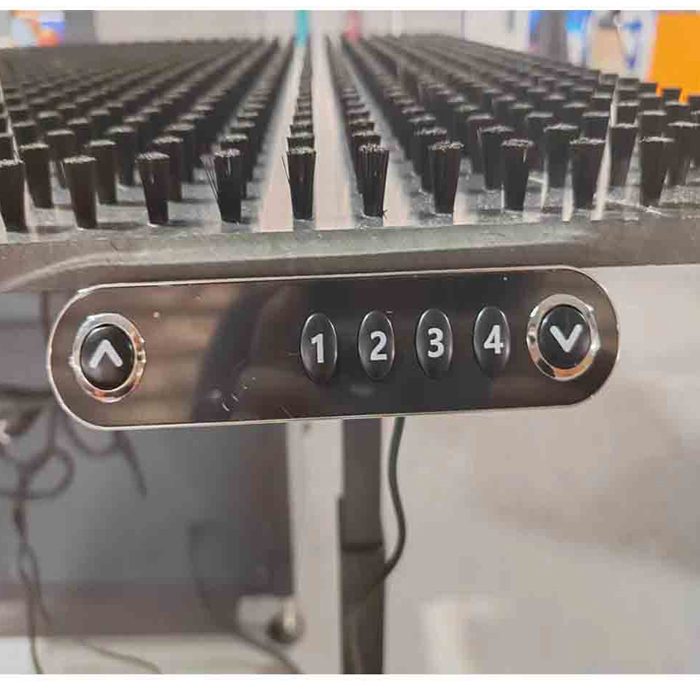 壓鉚機配套操作臺,適合大尺寸板材的壓鉚工作。升降臺升降高度69-115cm,臺面尺寸:長1200mm,寬700mm。4個高度可記憶設置。操作便捷,節(jié)省人工。臺面表面均勻分布高密度毛刷,避免板材表面移動過程中造成刮痕。